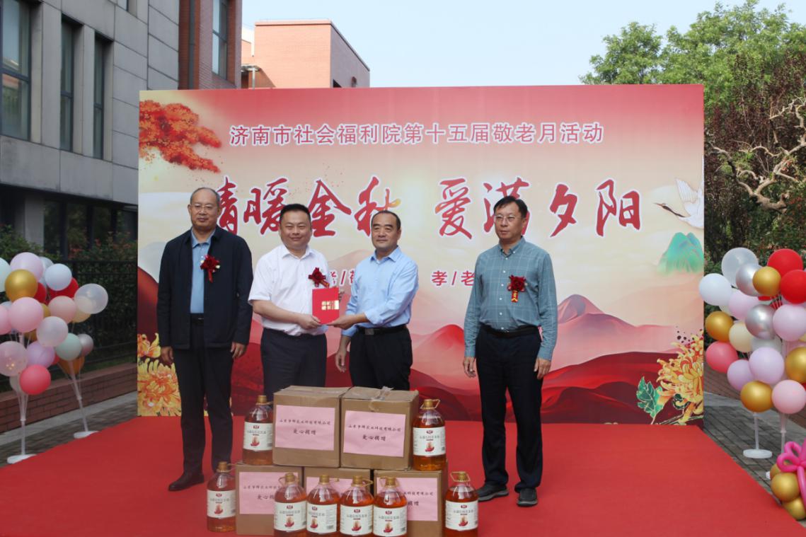 向济南市社会福利院捐赠了公司生产的“莘花”花生油20桶,以实际行动为老人们的节日生活增添温暖。福利院为包括王栋先生在内的爱心单位及个人颁发“最美爱心单位”“最美爱心人士”荣誉杯,感谢社会力量对养老事业的无私奉献。