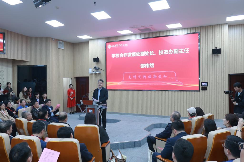 校友会的成立表示祝贺。他深情回顾了山东财经大学自1948年顾准先生担任首任校长以来,始终坚守“财经教育必须服务于国家建设”的初心,以及“克明峻德 格物致知”的校训精神。他指出,校友会不仅是情感交流的平台,更是助力校友事业发展的平台。他对校友会提出了三点希望:一是要让校友会成为情感交流的“平台”,便捷联络,重温情谊;二是要让校友会成为协同育人的“平台”,发挥校友优势,打造实践育人新模式;三是要让校友会成为学院发展的“引擎”,深度参与人才培养与学科建设,助力学院高质量发展。
