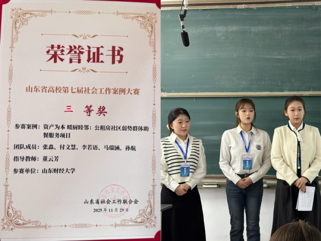 案例《“记忆不落幕,爱引意义路”——轻度认知障碍老人生命意义重塑的个案工作介入》(指导教师:董云芳,参赛研究生:安雨琪、付文慧、马瑞涵、李若语、周昊阳)以意义治疗理论为指导,从存在主义四维度分析轻度认知障碍老人问题需求,在原有价值三维度基础上创新融合两新价值作为五维途径,用四大技术设计意义驱动至内化六阶方案,助力服务对象重塑生命意义、提升生命质量,最终荣获二等奖。案例《资产为本暖厨睦邻:公租房社区弱势群体助餐服务项目》(指导教师:董云芳,参赛研究生:张淼、付文慧、李若语、马瑞涵、孙航)荣获三等奖,该项目挖掘社区厨艺特长者组建志愿助餐队,以“互助+低偿+慈善”模式解决高龄、残疾等群体就餐难题,激活社区内生服务力量,形成“共治共建共享”的社区治理新格局。