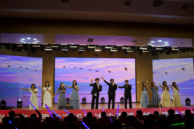 晚会的第三篇章将晚会推向高潮,武术《武林风》刚劲有力,一招一式尽显中华武术精气神,象征法治精神的刚正不阿;舞蹈乐器融合《沂情·龙跃·颂党》创意十足,将舞蹈柔美与乐器韵律完美结合,以艺术之美礼赞时代;街舞《like JENNIE》酷炫吸睛,学子们用活力舞步展现新时代法科学子的青春风采。歌唱伴舞《珊瑚颂》饱含家国情怀,经典旋律悠扬婉转,搭配优美灵动的舞姿,深情演绎对祖国的热爱与法治盛世的赞颂,感染力十足,打动全场观众。盛世华章里续写法治新篇,青春风采中彰显时代担当,每一个节目都定格法治与青春交融的高光时刻。