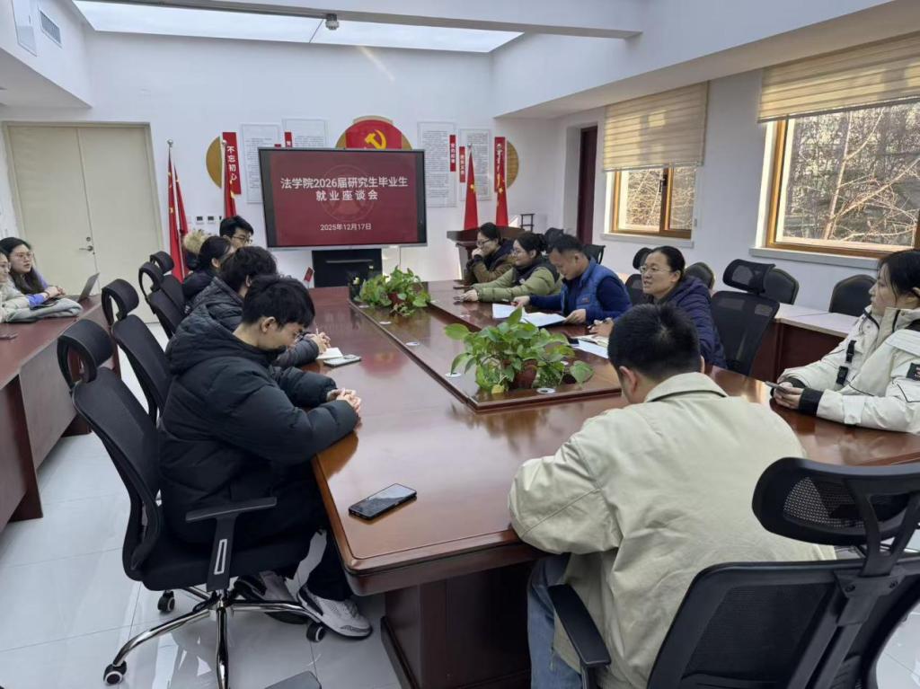 2025年12月17日上午,学院于燕山校区6325会议室召开2026届研究生毕业生就业座谈会。党委副书记陶晓华、沙林斌及部分2026届研究生毕业生代表参加会议。