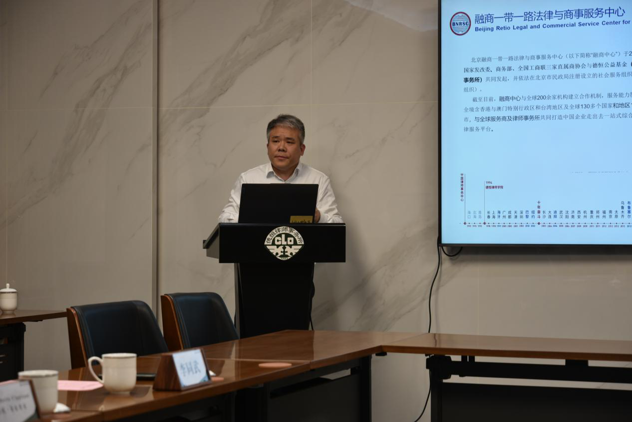 德恒济南办公室主任高秀峰向与会专家介绍了北京德恒(济南)律师事务所、北京融商一带一路济南服务机制、山东济南域外法查明中心的概况、发展现状与业务范围等总体情况,德恒济南跨境业务专委会主任崔焕鹏就德恒济南及北京融商一带一路济南服务机制涉外业务合作及开展情况做了进一步介绍说明。
